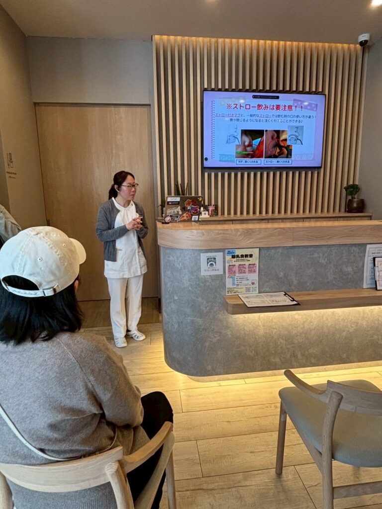 歯科衛生士からは、離乳中期のお口のケアについてお話しました。